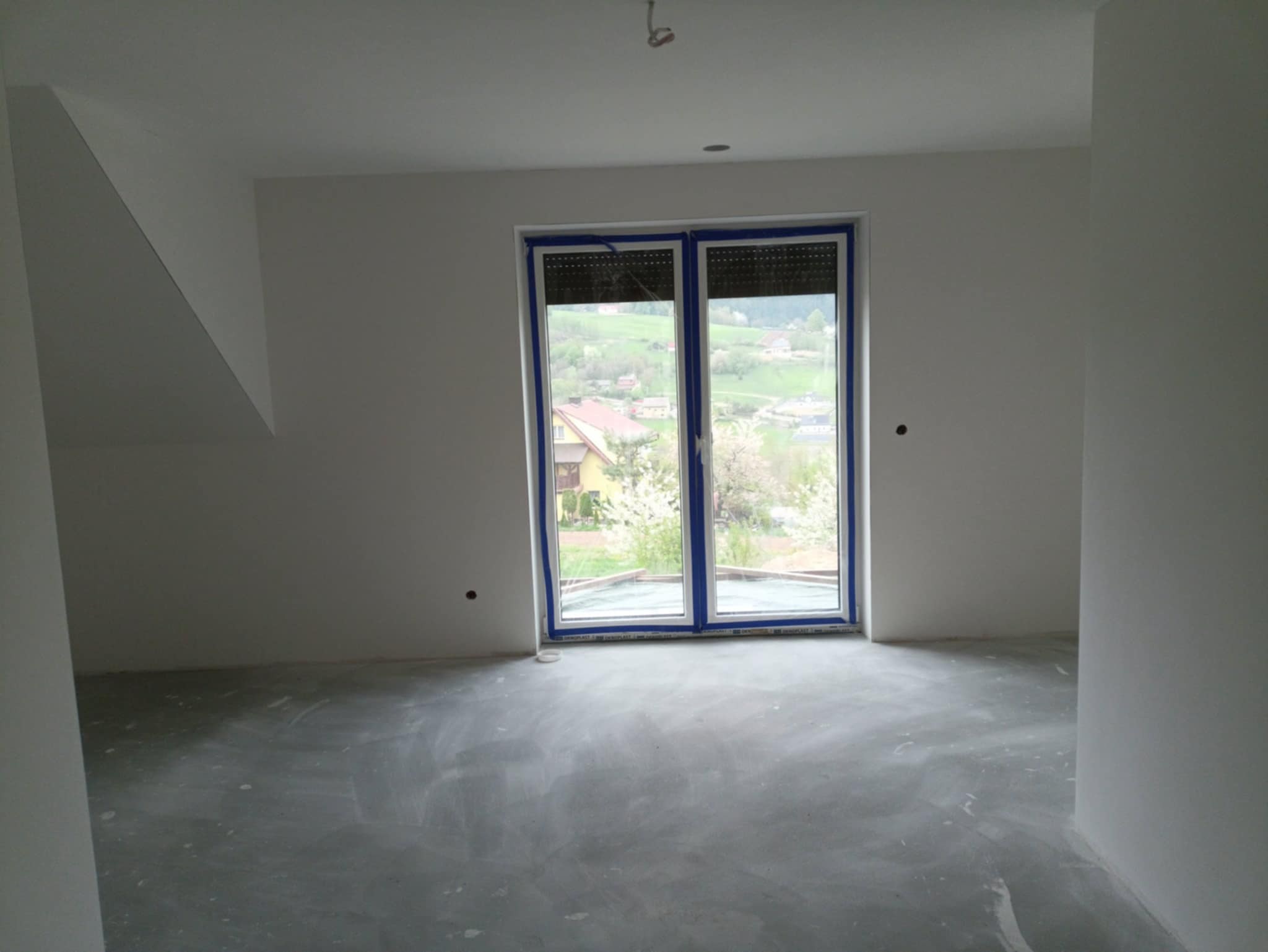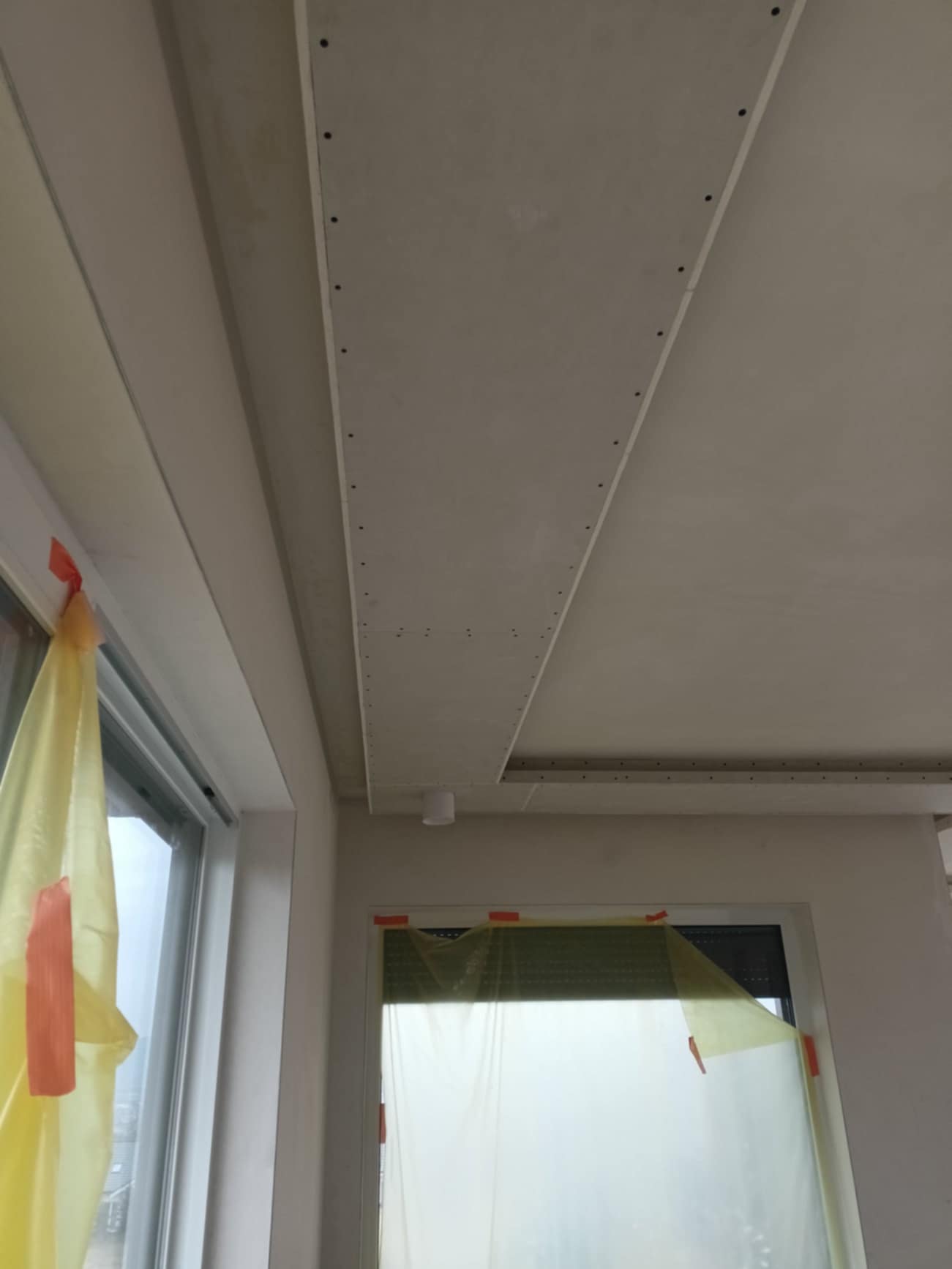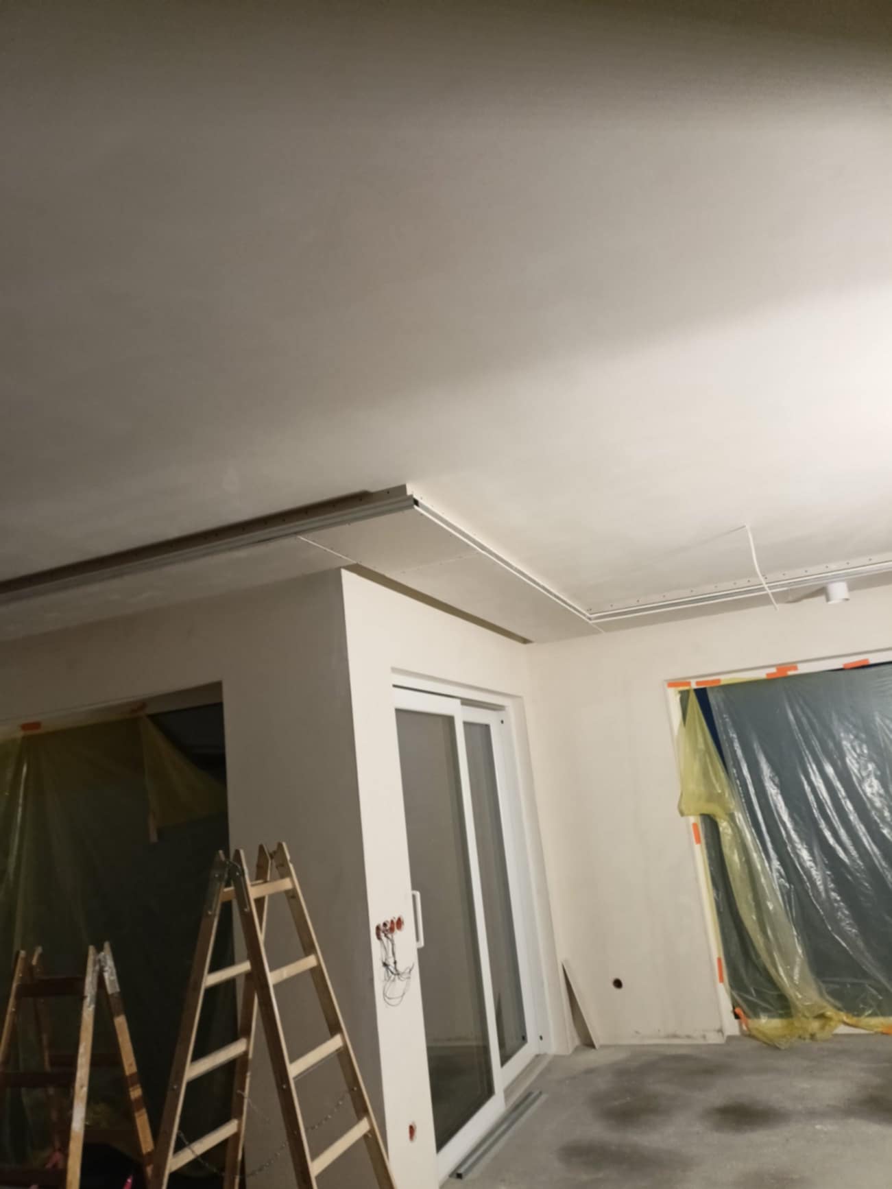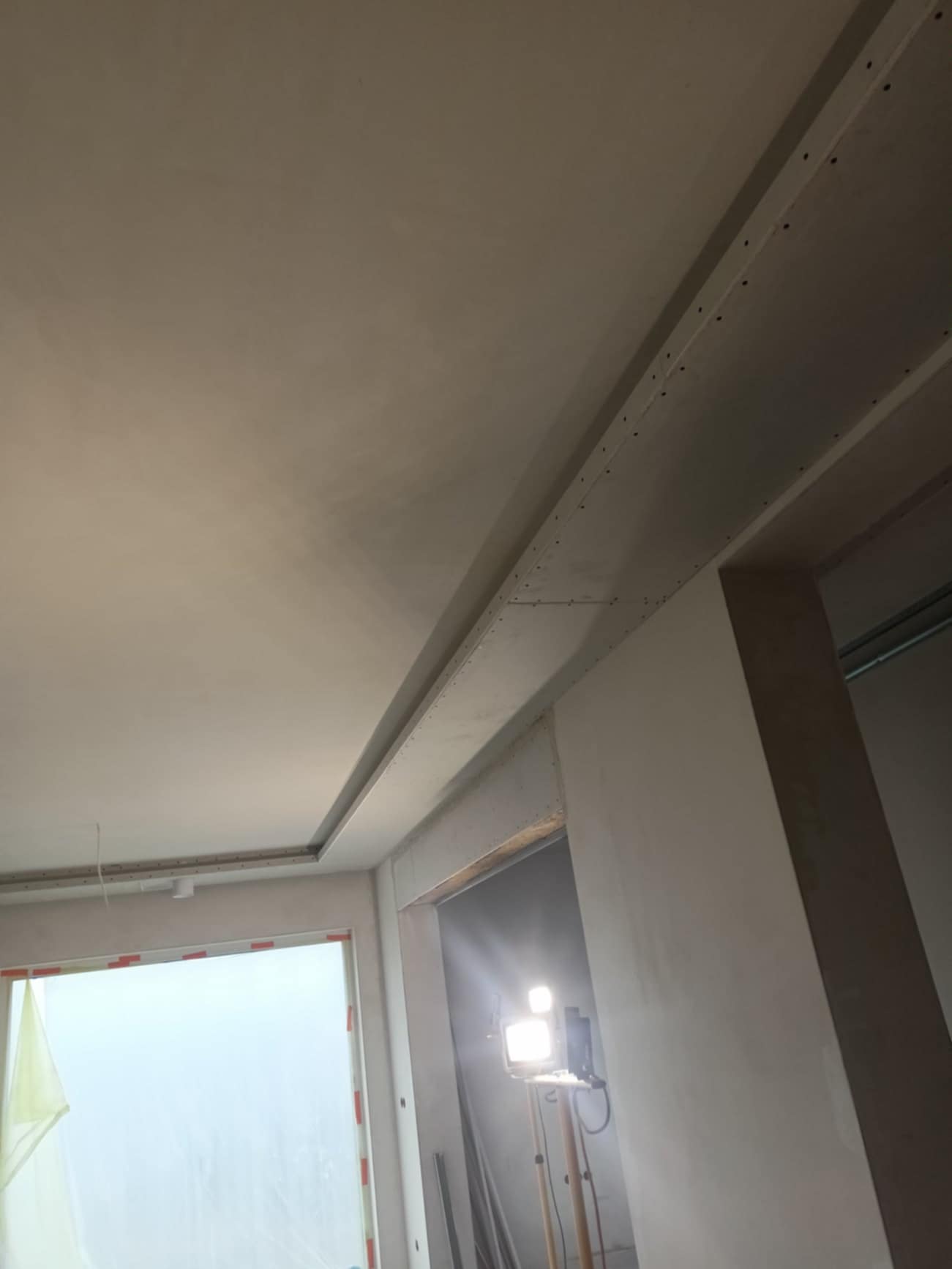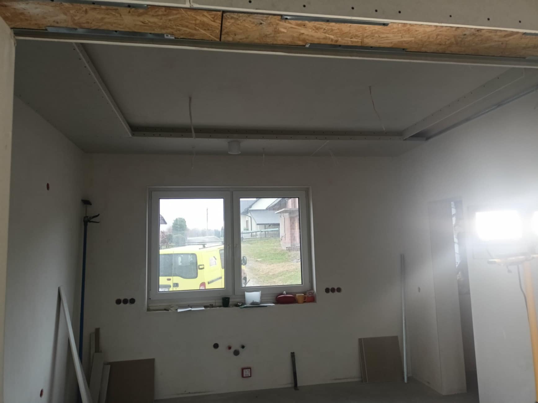 Realizacja prac w Biczycach Dolnych obejmowała wykonanie zabudów okien dachowych i wnęk pod taśmę LED oraz szpachlowanie całego obiektu. Prace rozpoczęły się od precyzyjnego wymiarowania i montażu konstrukcji wsporczych, przez instalację profili podświetlenia LED, aż po szlifowanie i wyrównanie ścian i sufitów, co pozwoliło na uzyskanie gładkich, gotowych do malowania powierzchni.